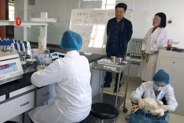 在实训广场“鸡新城疫抗体水平测定”项目备赛现场,宣永华观看了教师李桂芹指导学生进行入场、采血、血样离心操作等环节模拟比赛,认同该项目上午模拟全程比赛,指导教师指出存在问题,下午和晚上再进行专项练习的训练流程。肯定该项目国赛省赛捆绑,以国赛带省赛,组织技能兴趣小组成员轮流观摩、备赛,扩大学生受益面的创新做法。
