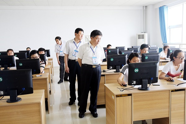 本网讯 6月24日,2018年滨州市企(事)业政工人员专业职务申报资格考试在我院实训广场举行。院党委书记杨光军在市委宣传部副部长、市文明办主任徐新一的陪同下到实训广场视察考务工作,要求考务人员围绕考试全面细致做好相关工作,预防突发事件,确保考试顺利进行。来自全市企(事)业单位的40余名政工人员参加考试。 考前,院相关部门积极配合市委宣传部就本次考试专门组织考务人员培训会,强调纪律要求,明确责任分工,扎实做好设备调试、考场布置等各项准备工作。 走向世界杂志社社长助理曹玉山带队的省巡考组来滨进行巡考,对全市考务工作给予了充分肯定和高度评价。 党委(院长)办公室、党委宣传部主要负责人参加相关活动。