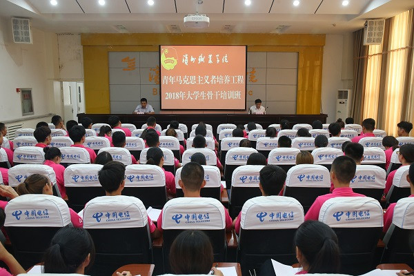 6月27日下午,我院“青马工程”2018年大学生骨干培训在多媒体报告厅举行,党委书记杨光军作《坚定文化自信,争做新时代合格接班人》专题报告,受到学生们一致好评。团委主要负责人主持报告会。党委(院长)办公室负责同志参加活动。